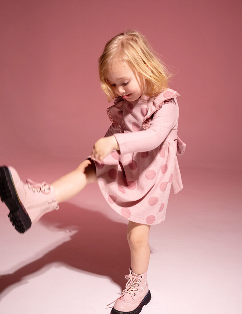 Παιδικό Φόρεμα Πουά Σάπιο Μήλο Με Φιόγκο Στο Πίσω Μέρος Εβίτα