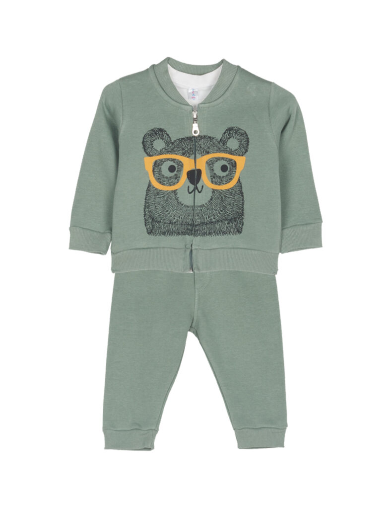 Βρεφική Φόρμα Φούτερ 3τμχ Με Ζακέτα “Bear” Χακί Dreams