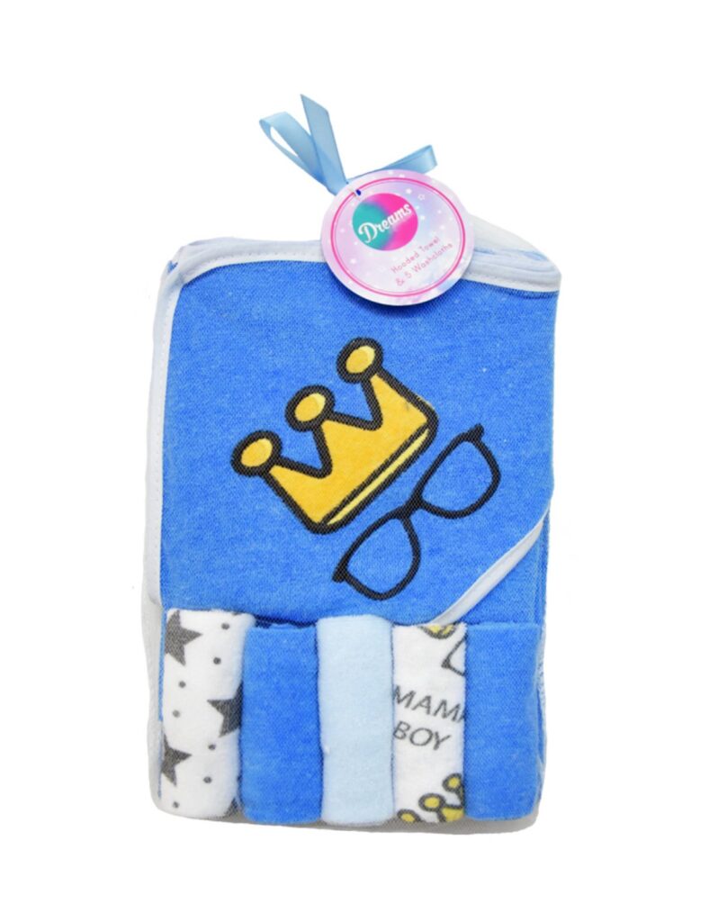 Βρεφική Κάπα-Μπουρνούζι “King” με Κουκούλα Μπλε και 5 Λαβέτες Dreams Για Αγόρι